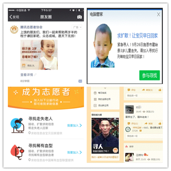 腾讯通过区块链技术,连接了包括腾讯手机管家、微信、广点通等多个腾讯内部的寻人平台,打破了信息壁垒,实现各大公益平台的信息共享,提升公益寻人的协同效率。