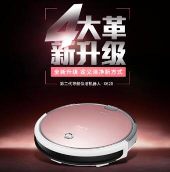 X620导航扫地机器人,获得2016年中国服务机器人大赛“最佳设计奖”。升级第二代导航系统,运算更快,达到高覆盖、低重复、不漏扫的终极清扫目的。设计上,金属拉丝镜面,高颜值、防刮花,7.2cm超薄机身,床底、沙发底部、柜子下面等不易清扫的地方,它能穿梭自如。同时配备了进口电机,吸力可达1200pa,实现高效无死角清扫;除此之外,还配置了高能反应虚拟墙,率先实现分区清扫,更轻松自如。