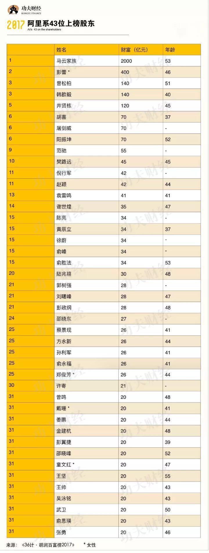 胡润百富榜:阿里系43人上榜 王健林跌至第5业界