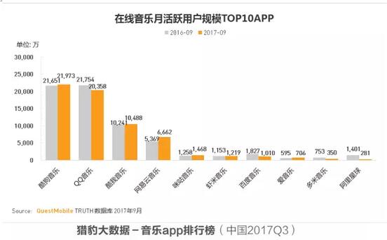 不仅在应用市场的表现出色,近日猎豹全球智库、Quest Mobile、艾瑞咨询三家数据平台发布2017 三季度在线音乐应用的成绩单,酷狗音乐一如既往蝉联“N连冠”
