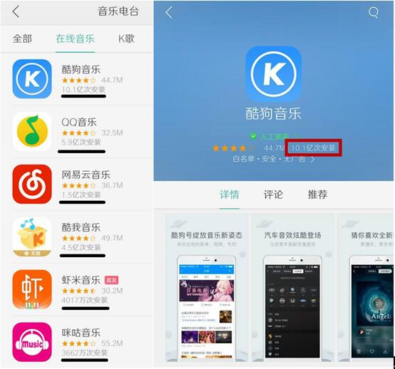 OPPO用户最爱用酷狗,各应用市场下载量率先破10亿堪称国民音乐APP互联网