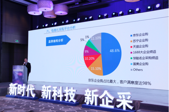 智慧采购的新时代已经到来。12月6日,由工业和信息化部赛迪研究院、中国电子报社主办的主题为“新时代 新科技 新企采”的2017(第三届)互联网+企业采购高峰论坛在京举行。在本次论坛上,《中国企业电商化采购发展报告(2017)》(以下简称《报告》)发布,《报告》指出,电商化采购在企业级电商市场表现活跃,其中京东企业购以48.6%的份额占据企业级电商市场首位,并荣获“2017中国电商化企采创新平台奖”,继续领跑企业级电商采购市场。