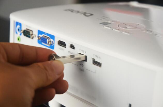 但要是没有WiFi信号、或者信号不好怎么办?像我们公司会定期组织旅行式团建,途中可能会选择在某个咖啡馆、某块大草坪上开个小会做个员工培训,网络状况就没法保证,而E610的U盘直读投影功能轻轻松松就解决了这个问题,即插即投,无需再把文件拷来拷去。