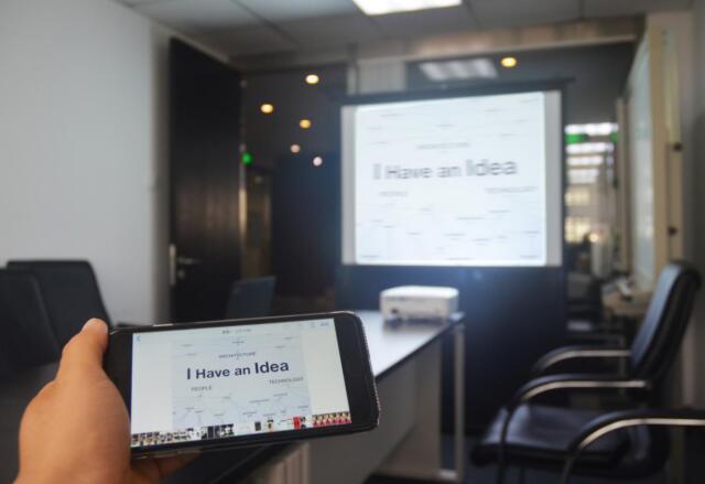 在行政的建议下,老板让人搬了一台明基智能商务投影机E610回来。明基E610自带智能系统,无需使用连接线,也不需要借助电脑中转,就能通过WiFi无线连接电脑、平板、手机等终端设备,而且还能在iOS、Mac OS X、Android、Windows四大平台间自由切换,非常方便且效率,会议室看起来也更加整洁。