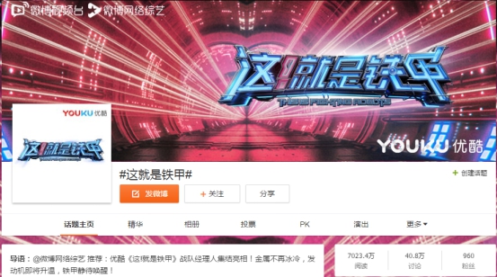 1月31日,郑爽、张一山、吴尊正式入主优酷2018超级网综《这!就是铁甲》,担任明星经理人,引发无数网友粉丝的热情打call,在微博没有热搜的情况下,铁甲依旧霸榜,#这就是铁甲郑爽#、#这就是铁甲#分别霸占综艺榜Top1、Top2多时。《这!就是铁甲》不仅拥有超高水准的内容硬核,在广告营销方面更抛出诸多玩法,吸引了众多品牌的关注。
