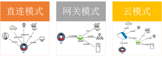 直连模式就是管理端与终端之间不经过其他节点直接相连,这种模式一般用于近距离通讯,例如使用无线方式通讯的有蓝牙、WIFI热点、NFC等,使用有线连接方式通讯的有USB、网线、同轴电缆等。此种方式由于设备信任度非常高,厂商在生产的时候一般不会考虑安全问题。