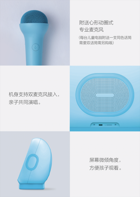 *每台儿童电脑附送一支同色话筒,需要双话筒需另购哦