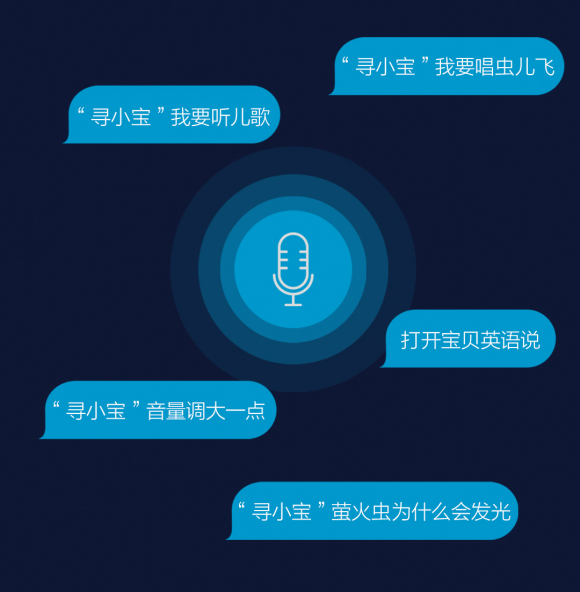 呼唤“寻小宝”,即可唤醒孩子的专属小伙伴。拥有强大对话能力的“寻小宝”可以机智应答孩子的“十万个为什么””。完成语音指令、点歌、调节音量、切换功能……说句话,全搞定。