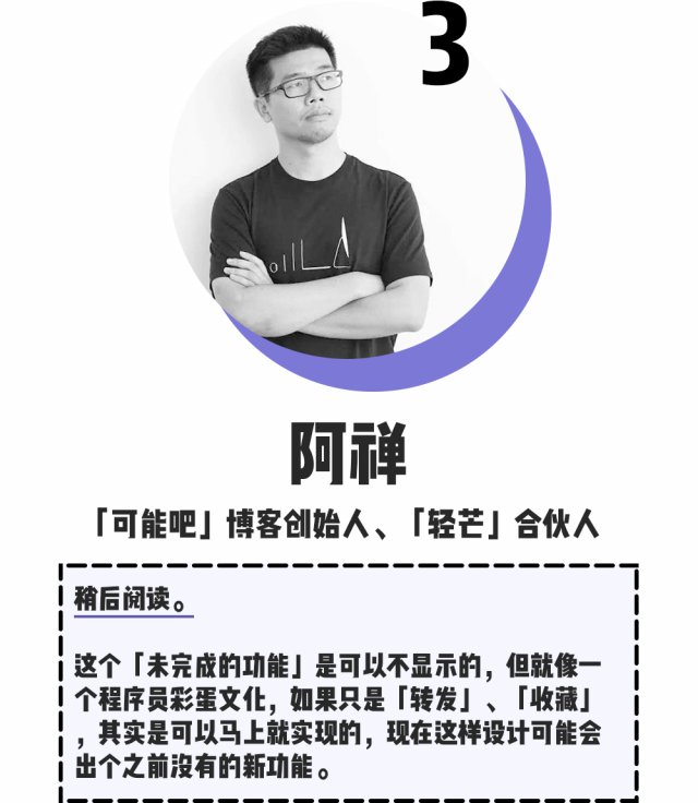 那么你认为「未完成的功能」会上线什么呢?欢迎分享你的观点,在留言区留下你的预测。