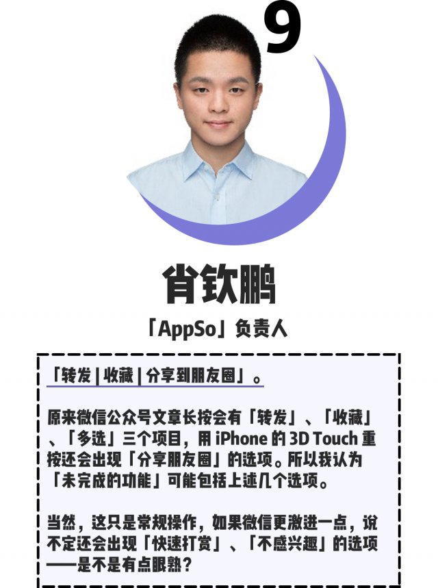 如今这个「未完成的功能」彩蛋引发了众多猜测,知晓程序也采访了各方人士来做出自己的预测,其中有知名的 IT 评论人、新媒体从业者,也有热心读者、学生、不知姓名的微博用户 …… 他们的共同点在于:关心微信生态,对微信的发展充满乐观。