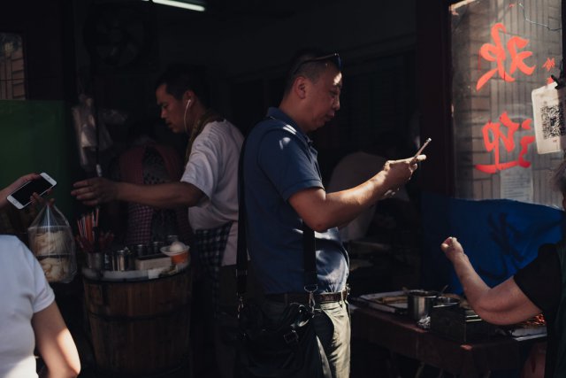 ▲一位顾客在使用微信扫码支付为早餐付款,图自:纽约时报