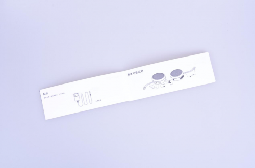 打开盒子上盖,可以看到T9的主机,一个长折页,以及两个黑色包装盒。