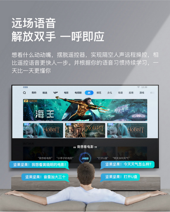 和业内其他近场语音投影不同,坚果J9搭载了坚果首创的远场AI智能语音,做到了真正无需遥控器,解放双手,一呼即应的“真”智能语音操控。坚果J9的远场语音使用360度的环形声场+远近拾音技术+深度学习能力+AFC回声消除技术,使得坚果J9不仅仅是一款投影,更是一款懂你的投影仪。