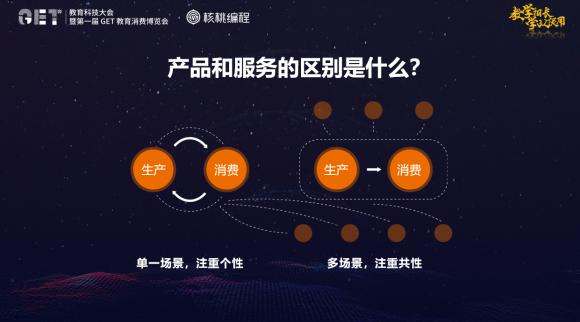11月25日-26日,GET2019教育科技大会暨第一届教育消费博览会(以下简称“GET2019”)在北京国家会议中心举行。作为亚洲最大教育科技峰会,GET2019今年以“教学相长,学以促用”为主题,汇集了超过500位国内外著名教育专家和各教育领域的领军人物,以及数万名教育行业从业者。大会当天,核桃编程创始人兼CEO曾鹏轩向与会嘉宾分享了题为“唯有把教学产品化,才能看到利润”的演讲,重点介绍核桃编程在教学产品化的理解,并首次宣布成为中国电子学会《全国青少年软件编程等级考试标准(Python语言)》标准制作组专家。