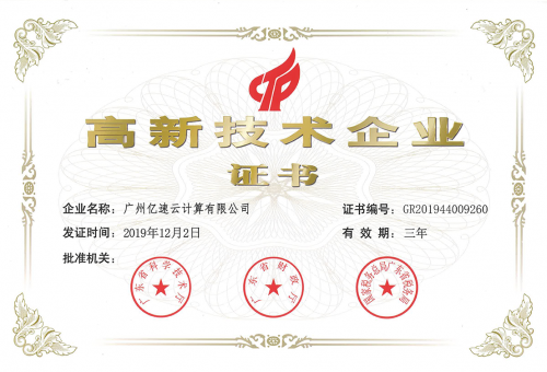 亿速云在2019年12月份,成功通过了“高新技术企业”认定,并于今年4月份拿到了认定证书!