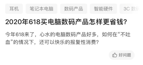 为了更好参悟优惠玩法,不少人都开始混迹各大社交平台获取优惠信息、种草做功课了,这不,知乎上就有人提出了“2020年618买电脑数码产品怎样更省钱”的问题,引来各路剁手党纷纷在评论区分享经验。