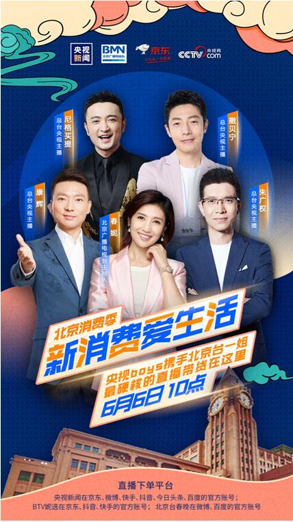 6月6日的北京消费季启动仪式上,星力爆棚的央视Boys天团康辉、撒贝宁、尼格买提、朱广权和北京电视台一姐春妮将在京东直播间与大家相见,期间还会有重量级嘉宾亲临现场,为大家带来北京传统伴手礼、湖北特产好物以及多款智能家电产品,京东也会针对这些商品给出大幅优惠补贴,能够看名嘴的精彩砍价秀又能低价买到品质好物,还有什么理由不来蹲守?