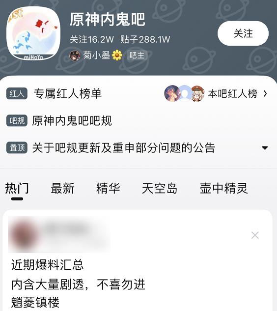 很多游戏社区和网站,甚至还会有内鬼的专门版块,百度贴吧也有一个叫 " 原神内鬼吧 " 的贴吧,集中了大量的爆料贴。