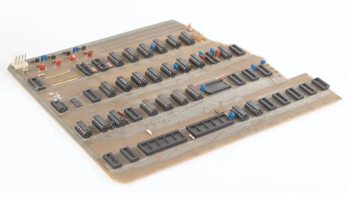 正如主办这次拍卖的网站 RR 拍卖所描述的,该电路板有一些损坏,电路板的右上方缺失了,这块缺失的部分已经被丢弃。这台原型机在“苹果车库”里保存了很多年,然后在大约 30 年前由史蒂夫-乔布斯交给了它现在的主人。当时,乔布斯已被苹果公司赶走。乔布斯当时认为这个原型不是要供奉的东西,而是要被重新利用的东西。一些集成电路被拔下来,微处理器和其他元件也被拔下来,估计是用于早期生产的 Apple-1 电脑。
