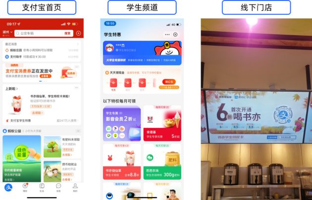 除此之外,支付宝「学生惠」版块是学生群体的专区,能够为学生提供优质、针对性、长期稳定的特权,为商家提供有效的流量引导。