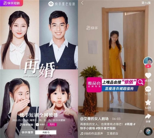 以唯品会为例,品牌在快手短剧中撬动流量到转化的效果极佳,迄今已经合作了10+部快手短剧,植入剧集潜在人群的有效触达为5.3亿,成为掘金快手短剧商业价值的弄潮儿。
