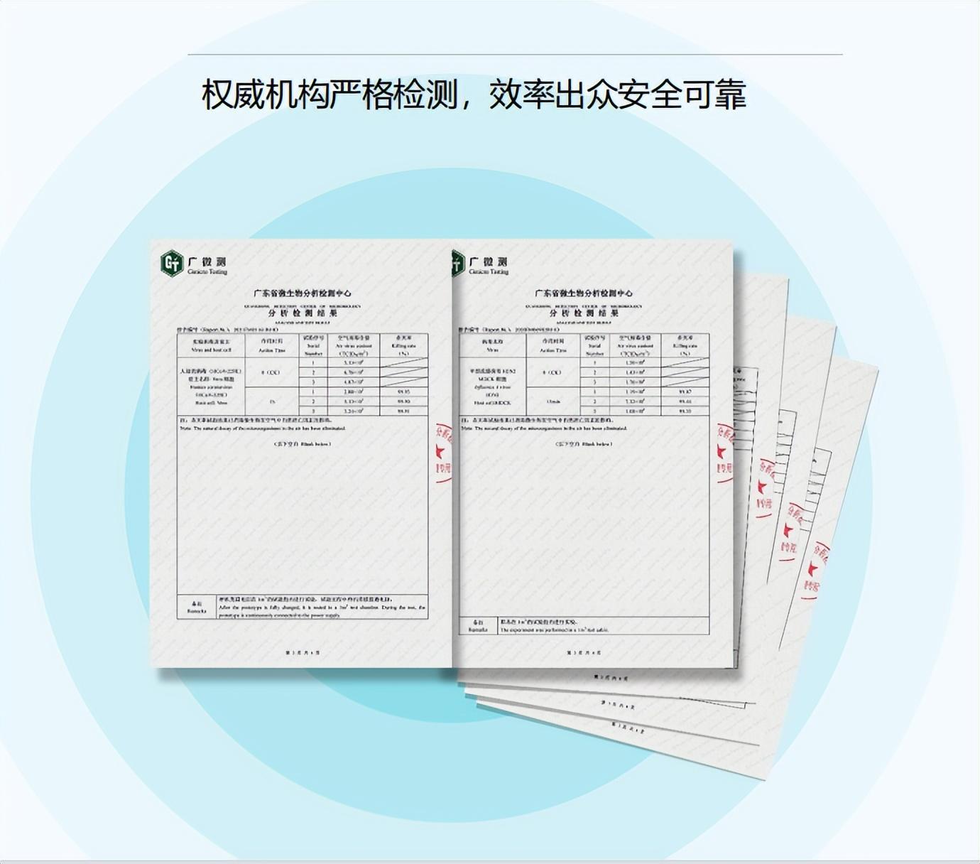魔锐空气消毒机可杀灭各种通过空气传播的病毒、细菌,经权威机构严格检测,冠状病毒(HCoV-229E)杀灭率大于99.9%,H1N1甲型流感病毒、H3N2甲型流感病毒、EV71手足口病毒及白色葡萄球菌杀灭率均达到 99.99%,效率出众、安全可靠。魔锐空气消毒机同时还能高效去除PM0.3、PM2.5等可吸入颗粒物及花粉、宠物皮屑、螨、霉菌等常见吸入性过敏原,对消除甲醛、TVOC污染物也有较好效果,可全方面提高空气质量、保护呼吸道健康。