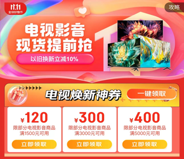 想要直达京东家电家居11.11电视影音会场,打开京东APP搜索“大电视真香”,即可一键跳转。电视焕新神券一键领取、人气爆款直降至高省4000元;以旧换新立减10%,旧手机、旧电脑都可以用于电视的以旧换新,让购买成本一降再降。锁定京东家电家居11.11,大屏电视现货不用等,真便宜的超低价不容错过!