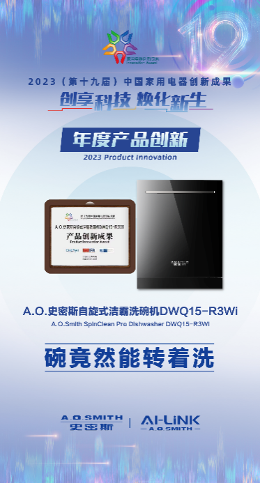 A.O.史密斯始终致力于为消费者提供健康、安全、节能的解决方案,以极具社会责任感的方式为消费者创造价值,带来真实的厨房体验升级。从早期的橱下冷热即饮净水机、瀞油烟机、到嵌入式蒸烤一体机和自旋式洁霸洗碗机,A.O.史密斯在AI-LiNK高端智慧互联平台的加持下,构建出舒适、便捷的厨房环境,让消费者对健康烹饪有了更加美好的体验,也让厨电行业的智慧升级有了更明晰的方向,为行业树立了创新标杆。此次再度荣获年度创新成果,可谓是实至名归。