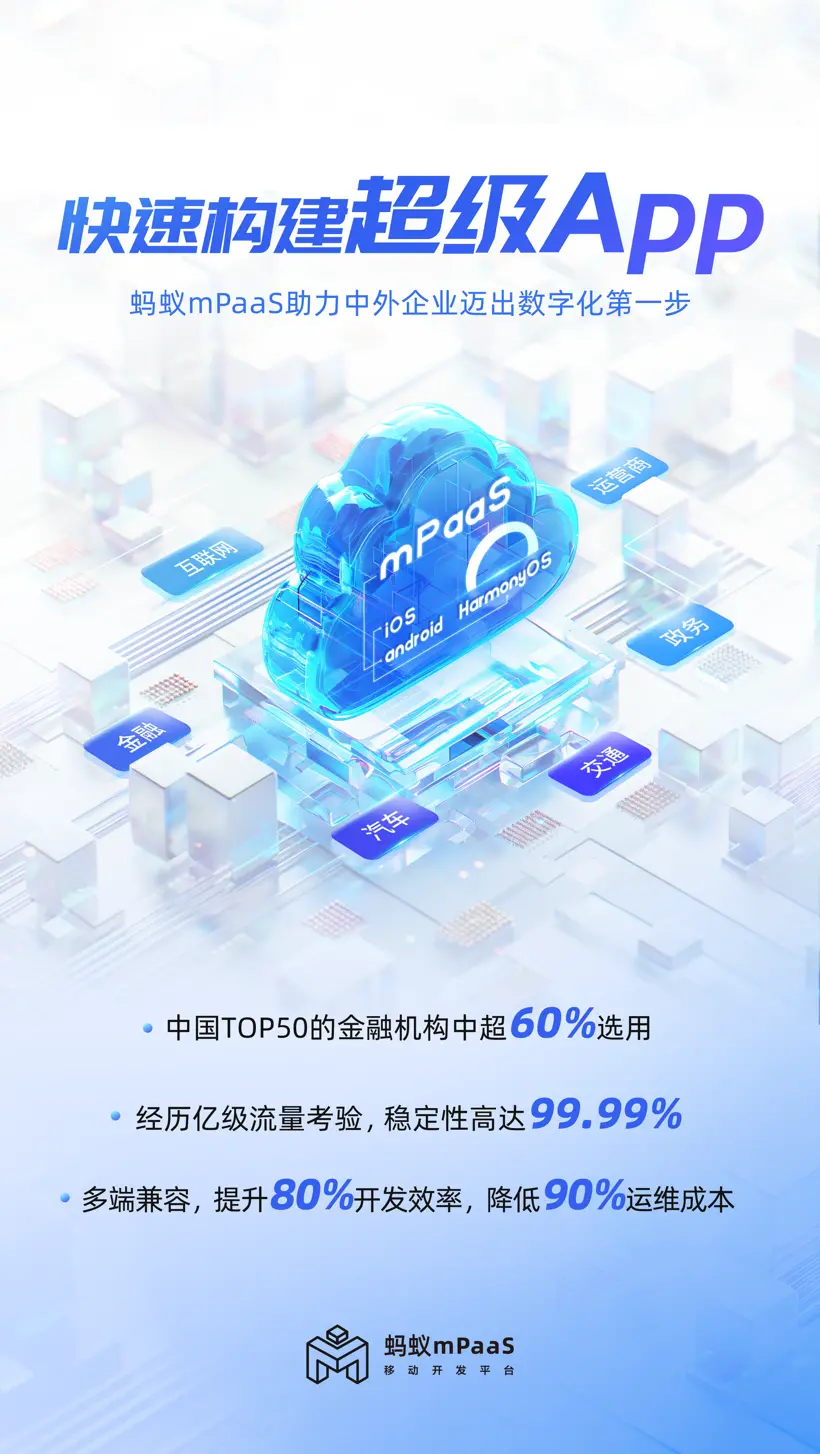 蚂蚁mPaaS在国内广泛应用于金融、政务、交通及互联网等行业,服务于上百家中大型客户以及上千家中小客户,中国移动、上海地铁、广发银行等2000+移动App均基于mPaaS进行不同操作系统的应用开发。