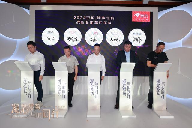 活动现场,京东钟表与阿玛尼、天王表、格雅、西普尼金表等8大腕表品牌签署战略合作协议,未来京东将整合在内容场域、营销资源等方面的优势,为品牌提供全方位支持,共同为消费者带来更多首发新品、尖货爆款等优质腕表选择,并在产品开发、全渠道生态共建等方面进行深度合作。
