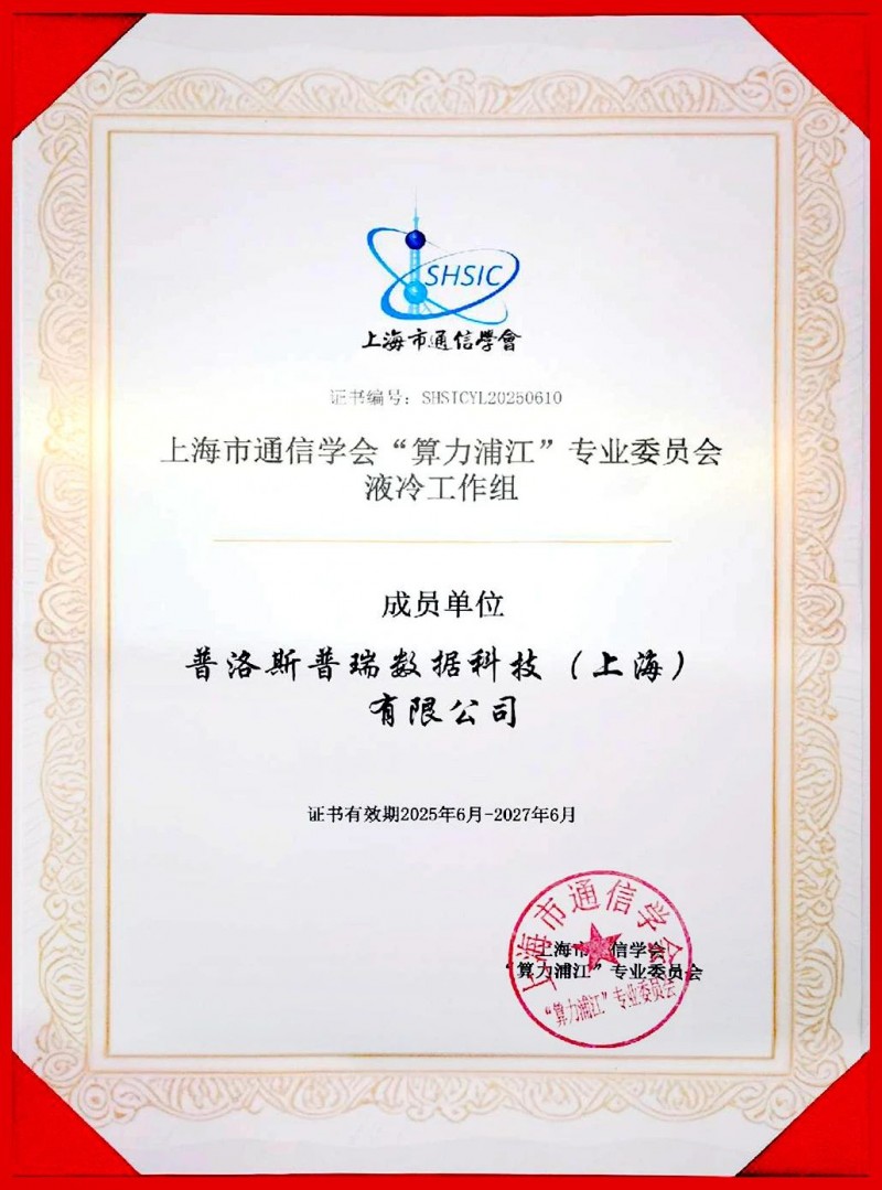 获授“算力浦江”专业委员会液冷工作组首批成员证书
