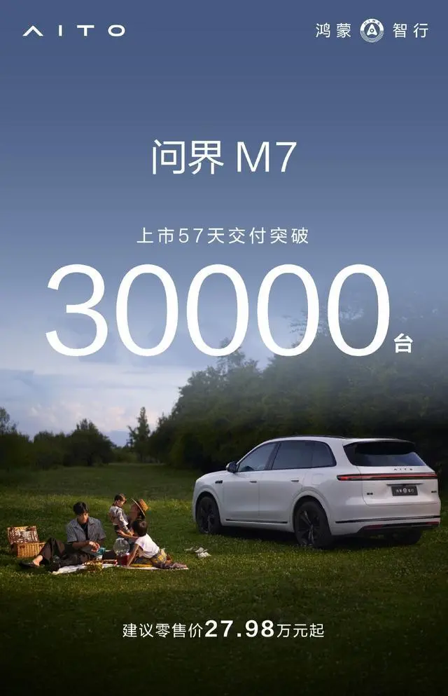 上市57天,鸿蒙智行全新问界M7交付突破30000台