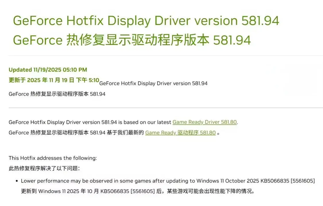 英伟达推581.94驱动,修复Win11游戏性能下降问题
