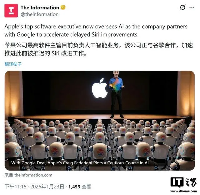 1 月 24 日消息,科技媒体 The Information 昨日(1 月 23 日)发布博文,报道称苹果工程师曾提议利用 AI 全面接管 iPhone 主屏幕,实现 App 图标根据用户习惯、时间和地点动态重排。