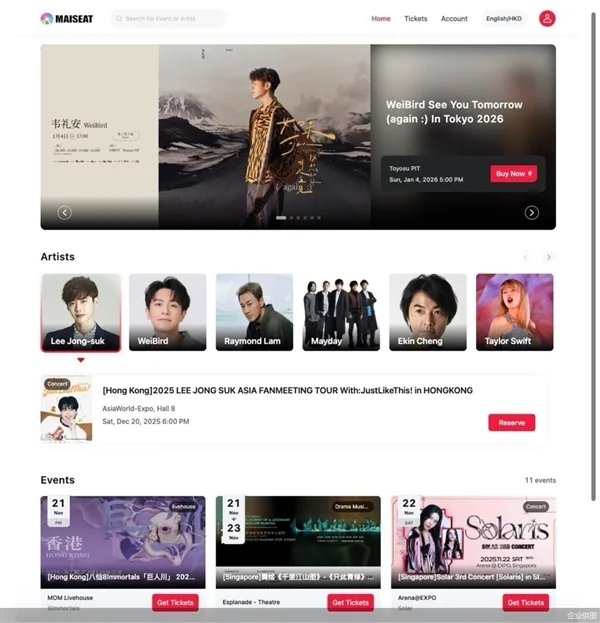 11月14日消息,今日,大麦娱乐宣布推出旗下全新业务品牌、全球演出服务平台“大麦国际(MAISEAT)”。