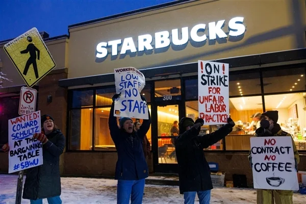 11月14日消息,据报道,日前,美国40多个城市的1,000多名星巴克工会员工,发起了无限期罢工,以此来推动提高员工薪酬和人员配备水平的集体谈判协议。