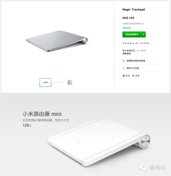 当然大伙儿可能也看到小米路由器mini与苹果Magic Trackpad