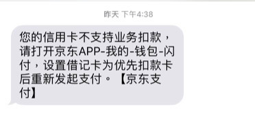 此前,尽管苹果Apple Pay中北京公交一卡通不能使用同样绑定在Wallet中的信用卡来进行充值,但可以使用已经绑定了信用卡的互联网平台的闪付卡来进行充值,例如美团闪付或京东闪付。不过,这一漏洞近期已经被修复,当用户使用绑定了信用卡的闪付卡进行公交卡充值时,会出现交易失败的提示。随即还会收到互联网平台发来的提醒短信,告知用户的信用卡不支持业务扣款,请设置借记卡为优先扣款卡。