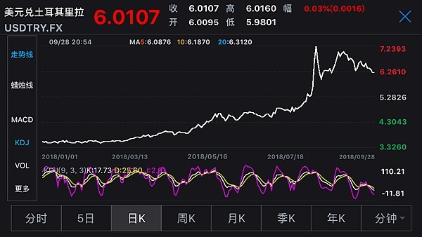今年以来,美元兑土耳其里拉持续走强 来源:Wind