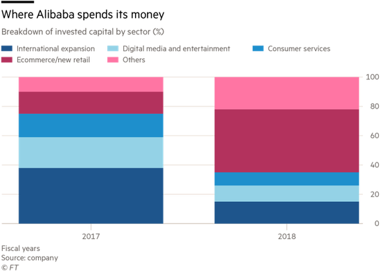 收购完全符合其关键服务领域,如外卖领域的饿了么,物流方面的菜鸟,以及在国际扩张方面收购了新加坡电子商务公司Lazada。