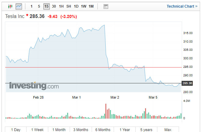 特斯拉股价周一跌超3%,报285.36美元。上周五下跌近8%。该股在过去12个月内下跌了15%,而同期标普500指数的涨幅为3.4%左右。
