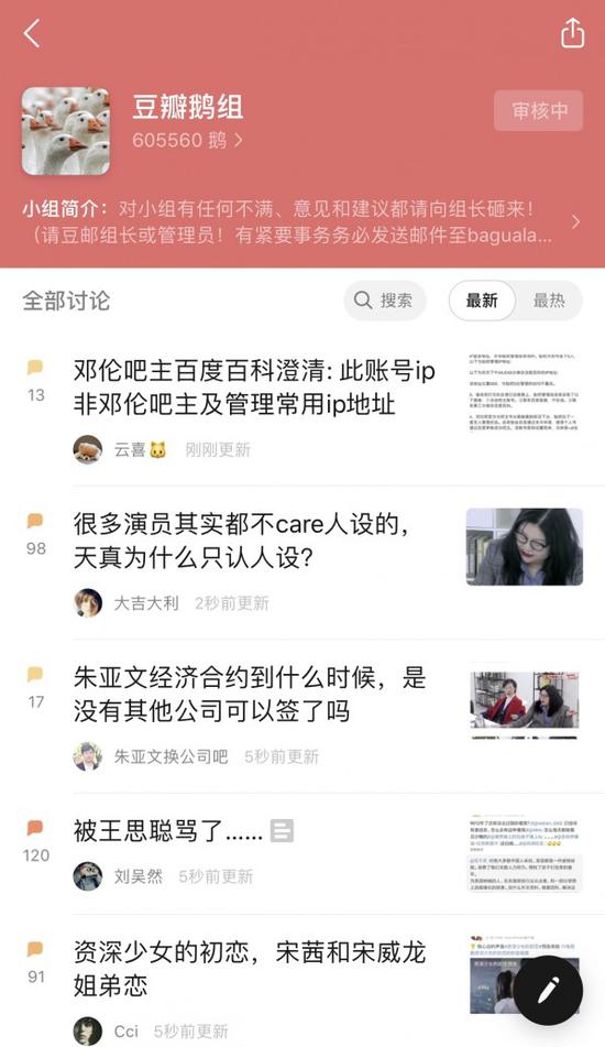 18日,北青报记者在豆瓣网发现,豆瓣鹅组创建于2010年5月,现小组成员超过60万人。组内成员称,该小组是豆瓣网流量最大的小组,入组审核极为严格,平时以娱乐八卦帖子为主,曾用名为“八卦来了”。