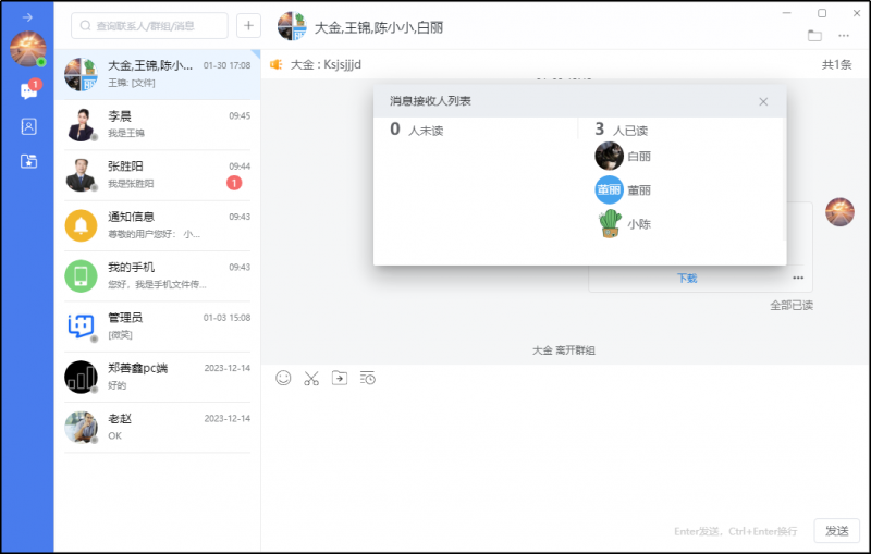 某大型制造企业的生产指挥大群中,通过小天互连IM的“@全员+消息已读确认”功能,确保生产调度指令100% 触达各车间负责人,且能实时查看谁已阅读、谁未处理,避免因信息遗漏导致生产延误。这种“高效传达+过程可控”的管理模式,让大群沟通从“无序扩散”转向“精准触达”。