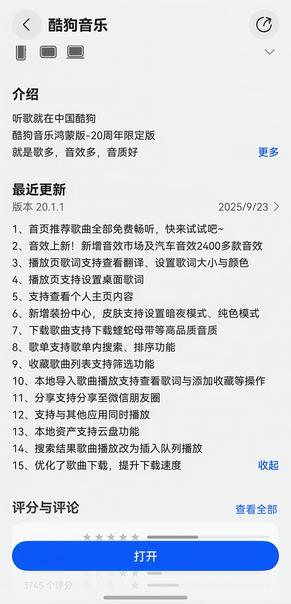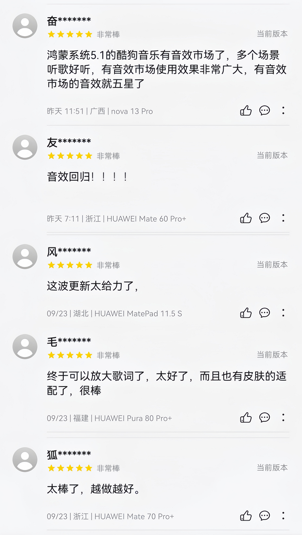 从音效市场到歌词设置,再到歌单、社交玩法的细节优化,全新升级的鸿蒙版酷狗音乐让用户的音乐时光成为了随心而动的享受。此外,鸿蒙版酷狗音乐独有的跨设备无缝接续、统一拖拽,以及对平板、手表、Pura X折叠屏手机等设备的深度适配,也让用户的音乐体验更加自由、流畅。鸿蒙版酷狗音乐对于用户心愿的重视收获了众多好评,未来更多的惊喜值得我们期待。这个十一,一起来感受鸿蒙版酷狗音乐带来的极致享受吧!