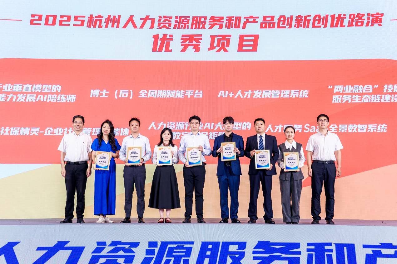 系列活动中,2025杭州人力资源服务和产品创新创优路演旨在发掘杭州具有技术含量、价值含量、品牌含量的人力资源服务创新创优项目,共有8个项目进入决赛。本次路演最大的特点是AI与人力资源服务的深度融合,展现出杭州人力资源服务业特有的“数智化基因”。今元集团的“人力资源行业AI大模型数字产品矩阵”项目,聚焦企业人事管理流程繁琐、招聘效率低、用工复杂等问题,以决赛第三名获评“优秀项目”。