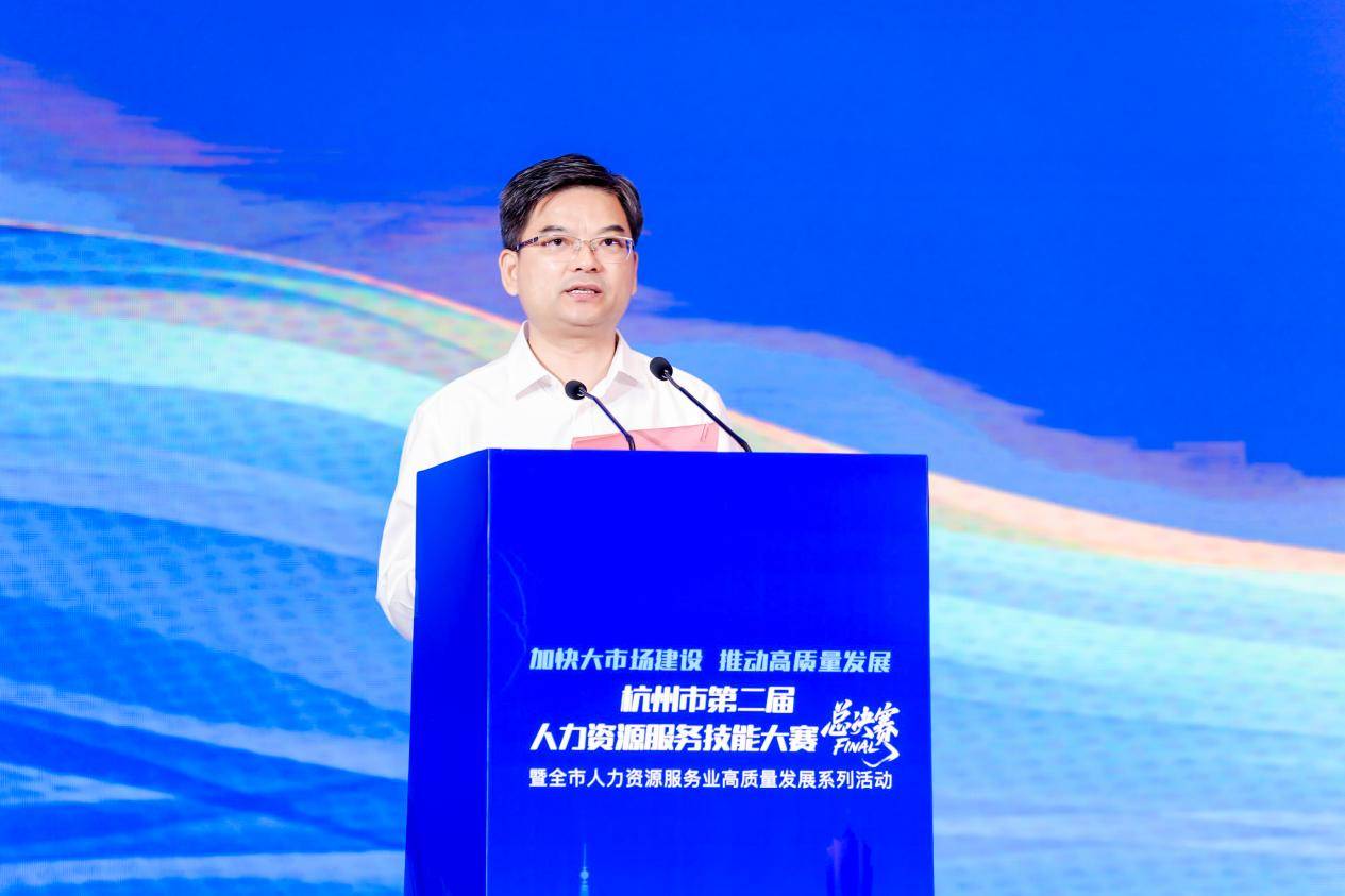 本次活动采用“双赛”+“双会”形式,在举办杭州市第二届人力资源服务技能大赛、2025杭州人力资源服务和产品创新创优路演活动两个赛事的同时,召开杭州市人力资源服务业高质量发展研讨会、2025杭州专精特新“小巨人”企业专场招聘会,展现“AI+人力资源”融合实践。中国人事科学研究院人力资源市场与流动管理研究室副主任、研究员吴帅,浙江省人力社保厅党组副书记、副厅长张旭明,区委书记李志龙,省人力资源服务协会会长袁中伟,市人力社保局党组副书记、副局长吴洁静,市人力社保局党组成员、副局长杨焕,市人才集团有限公司党委书记、董事长寿学军,区委常委、副区长樊峥等出席活动。系列活动吸引国内人力资源管理与研究专家、学者,知名人力资源服务企业负责人,知名企业HR等共1000余人参会,共同探讨人力资源服务高质量发展新路径。