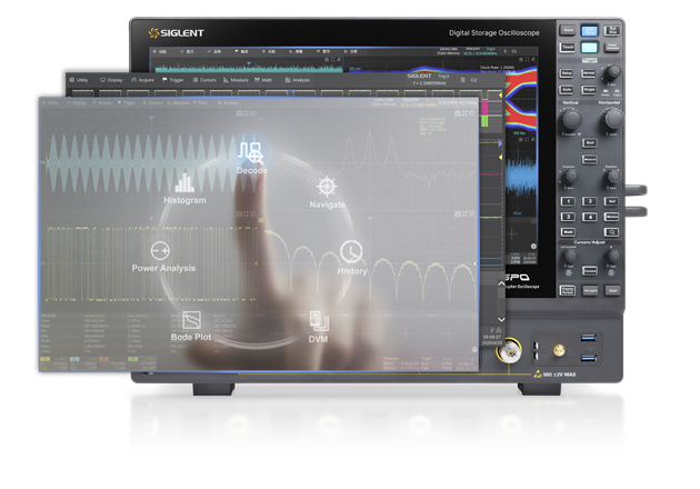 SDS8000A系列支持20余种触发方式,提供4路独立数学运算通道,支持32M点FFT分析及20多种时域运算,支持测量超过60种参数,并进行参数统计值的一键测量。SDS8000A还具备历史模式、搜索和导航、SignalScan、高速模板测试等功能。在总线解码方面,除标配I²C、SPI、UART、CAN、LIN解码外,SDS8000A还支持CAN FD、FlexRay、I²S、MIL-STD-1553B、SENT、ARINC 429、USB 2.0等十余种选配协议解码与触发,覆盖主流工业与通信标准。