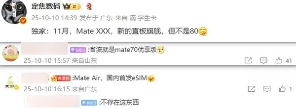 虽然目前尚未获得这款神秘新机的详细规格参数,但博主强调其将采用直板形态,与Mate 80系列形成差异化定位。业界观察人士认为,华为此番产品布局,既可通过Mate 80系列巩固传统旗舰市场,又能借助神秘新机探索超薄形态和新型通信技术的前沿领域。若关于“Air”机型的爆料属实,11月的华为发布会将呈现一场涵盖传统旗舰与创新形态的双重科技盛宴。