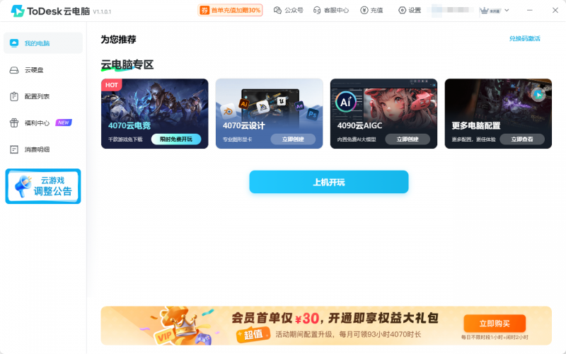尤为值得一提的是,云电脑会员首月特惠活动同步进行中。原价50元的月费,现在仅需30元即可享受,直降20元,折扣低至6折!这无疑是体验云端工作魅力的绝佳机会,让大家的工作不再受限于设备性能,真正实现“随时随地,高效办公、畅玩”。