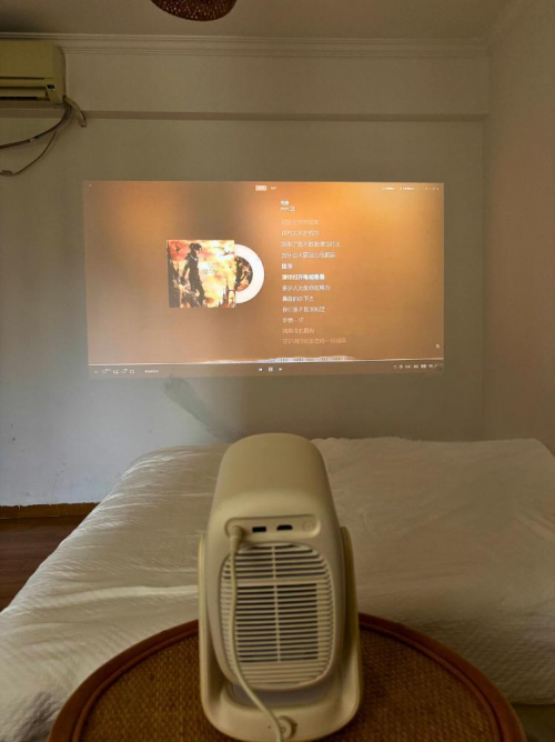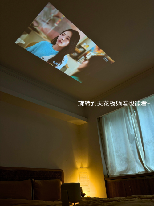 此外,云台支持俯仰120°、水平360°自由旋转,轻松实现画面在墙面、天花板、衣柜门等不同平面之间的灵活切换。无论是躺平看天花板,还是侧躺看墙面,都能找到最舒适的观影角度,完美适应卧室小空间的摆放限制和用户多样化的观影姿势需求。